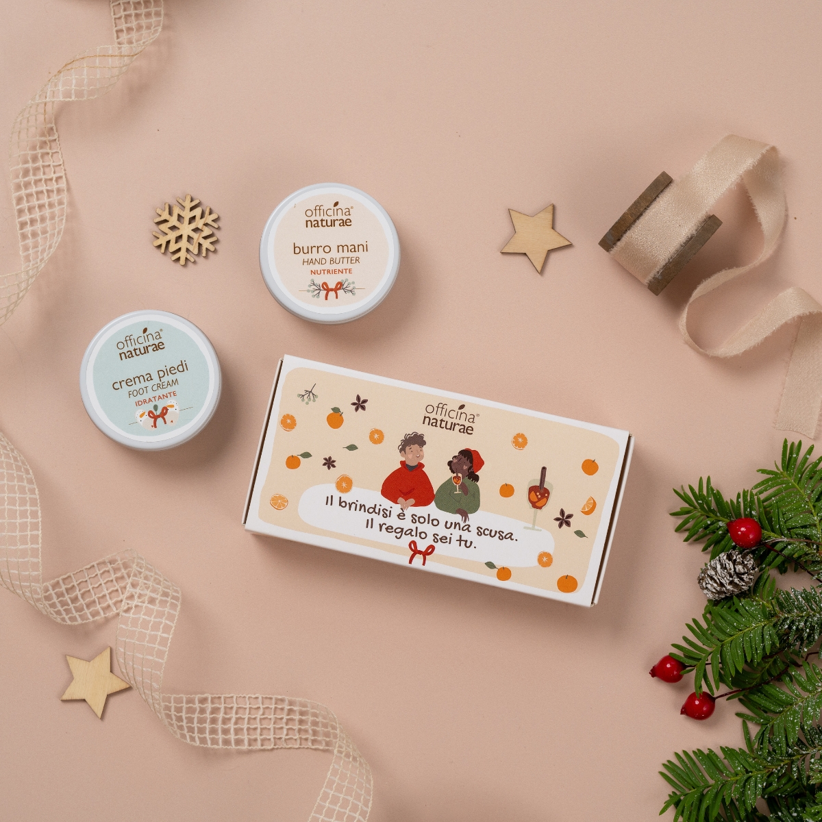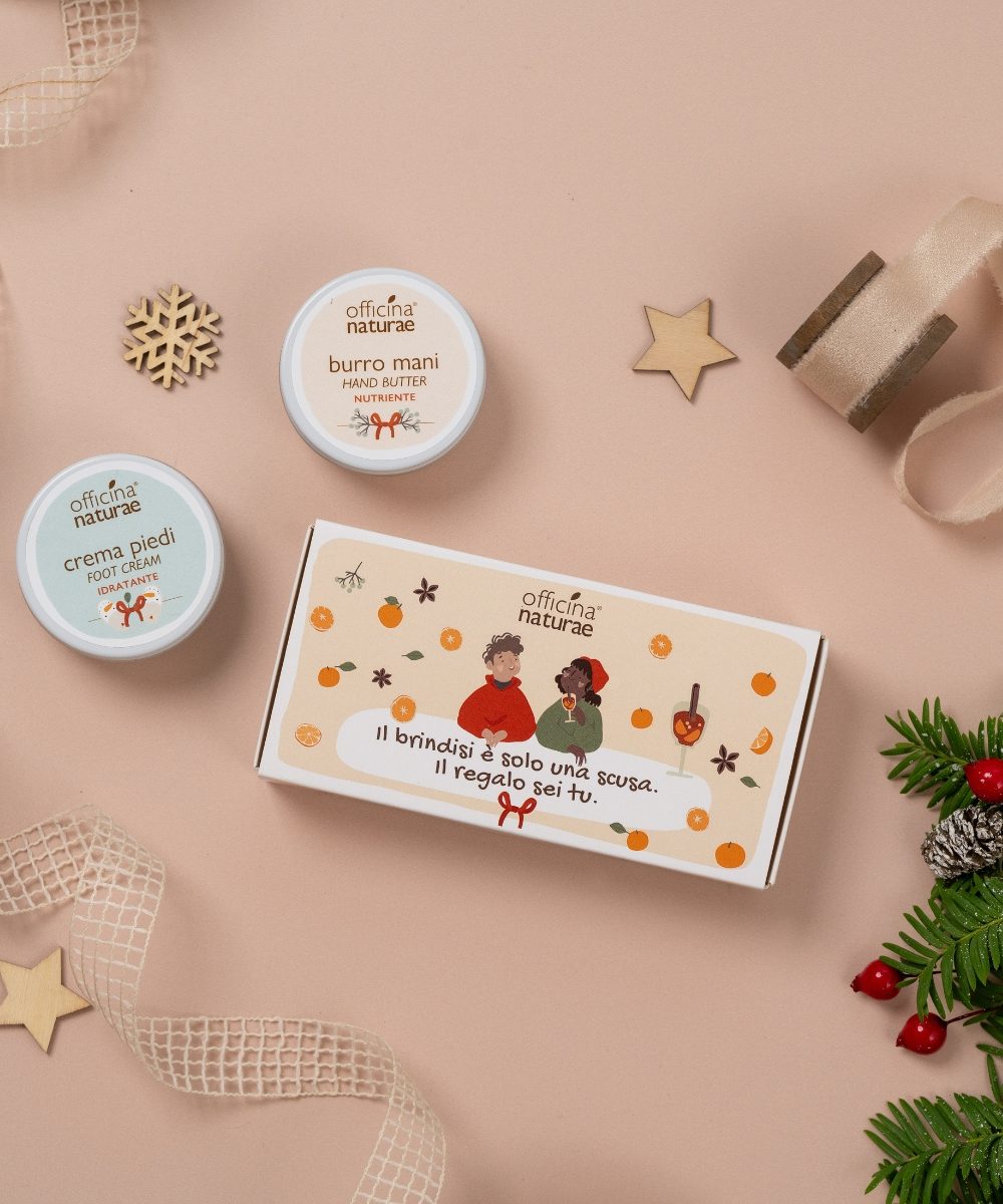 Il set “Il Brindisi è solo una scusa. Il regalo sei tu” è il pensiero perfetto per chi non smette mai di correre. È il rituale di comfort pensato per donare sollievo e idratazione profonda alle estremità più stressate dall’inverno.