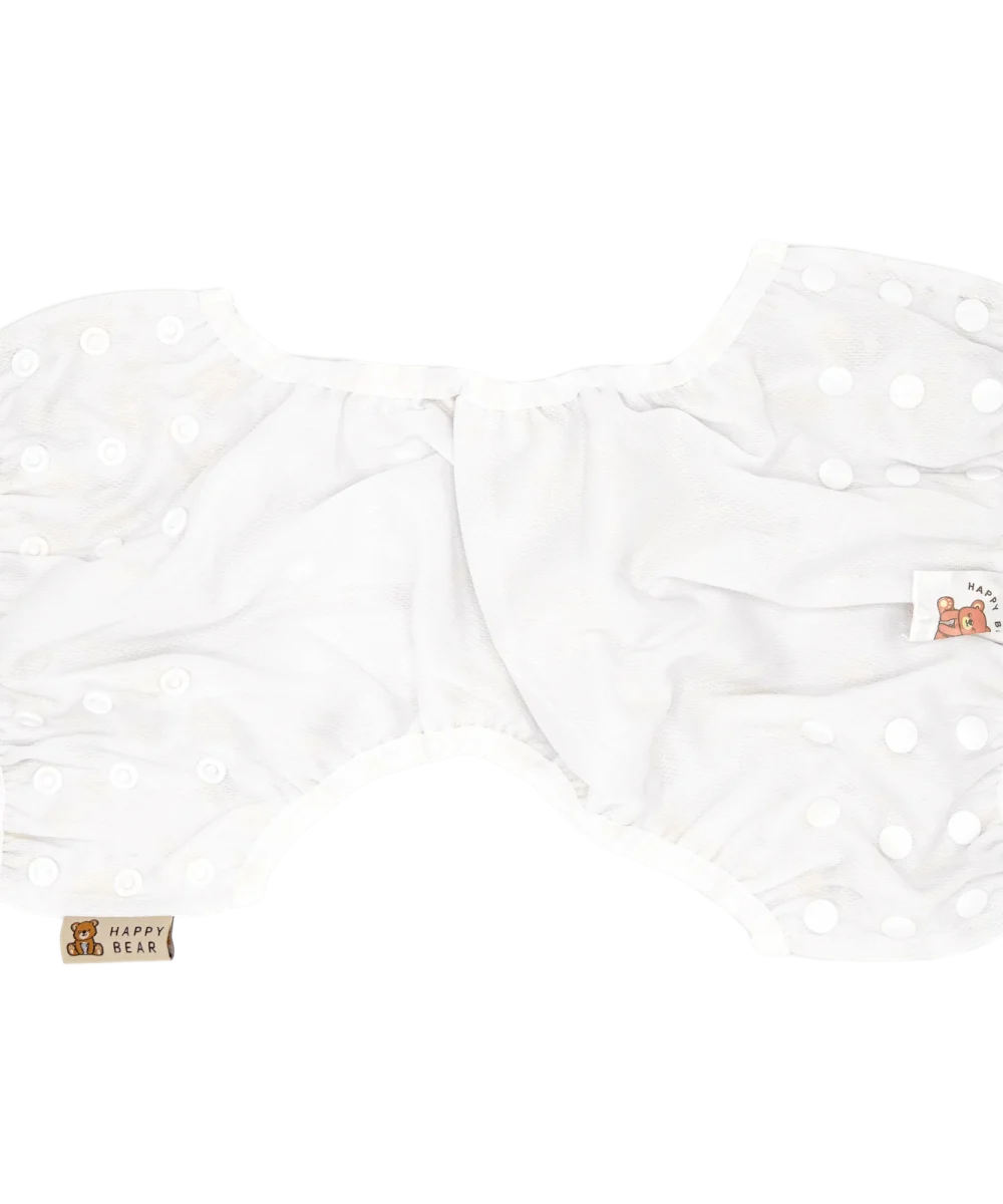 Perfetto per le giornate in piscina o al mare, il pannolino da nuoto riutilizzabile HappyBear offre una protezione affidabile e una vestibilità comoda. Non assorbe l’acqua ma trattiene le feci, evitando fuoriuscite durante il bagno. È regolabile grazie ai pratici bottoncini a pressione su fianchi e gambe, così si adatta perfettamente alla crescita del bambine.