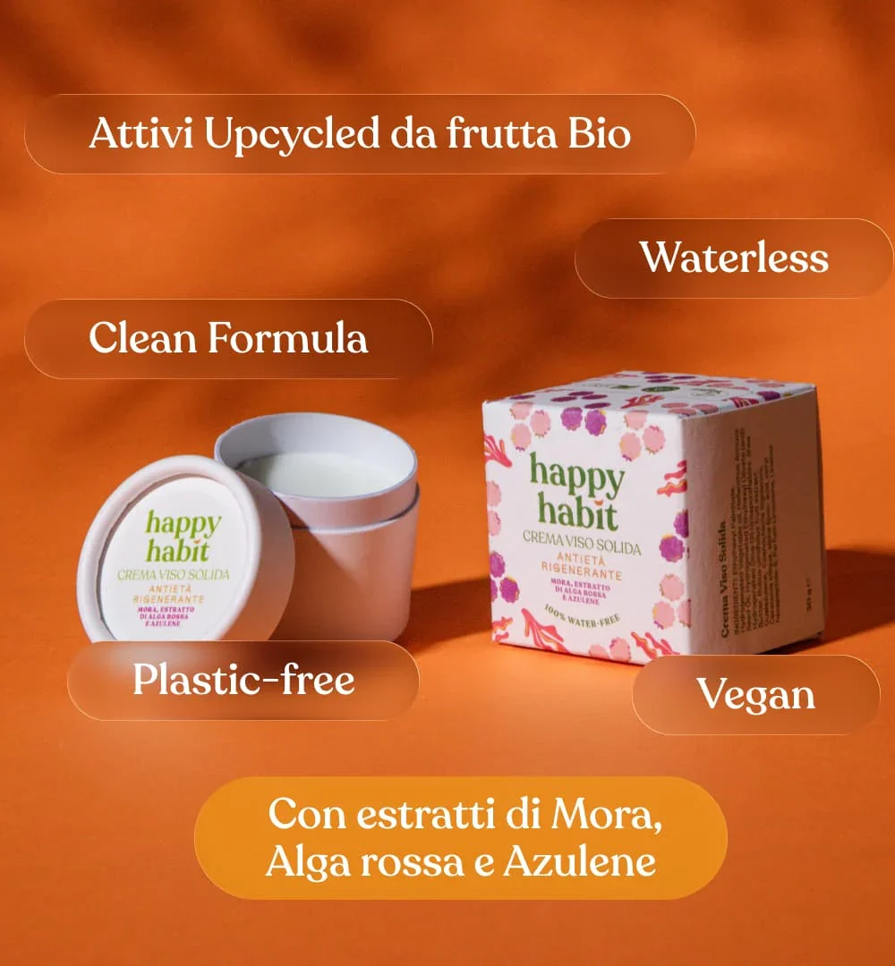 Sostenibilità Integrale: Il vasetto è 100% plastic-free, realizzato in cartoncino con un rivestimento interno in cera vegetale per preservare la freschezza del prodotto. L’astuccio esterno è in carta certificata FSC con fibre riciclate.