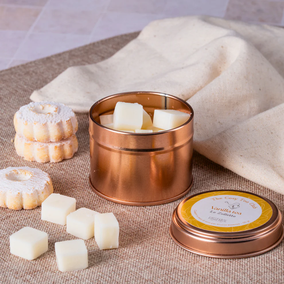 Le Zollette, in una speciale scatolina in metallo riutilizzabile color rosa-oro sono un dolcissimo rimando profumato ai momenti in cui bevevamo il tè assieme alla nonna e ci raccontava tutte quelle storie di quando era bambina.