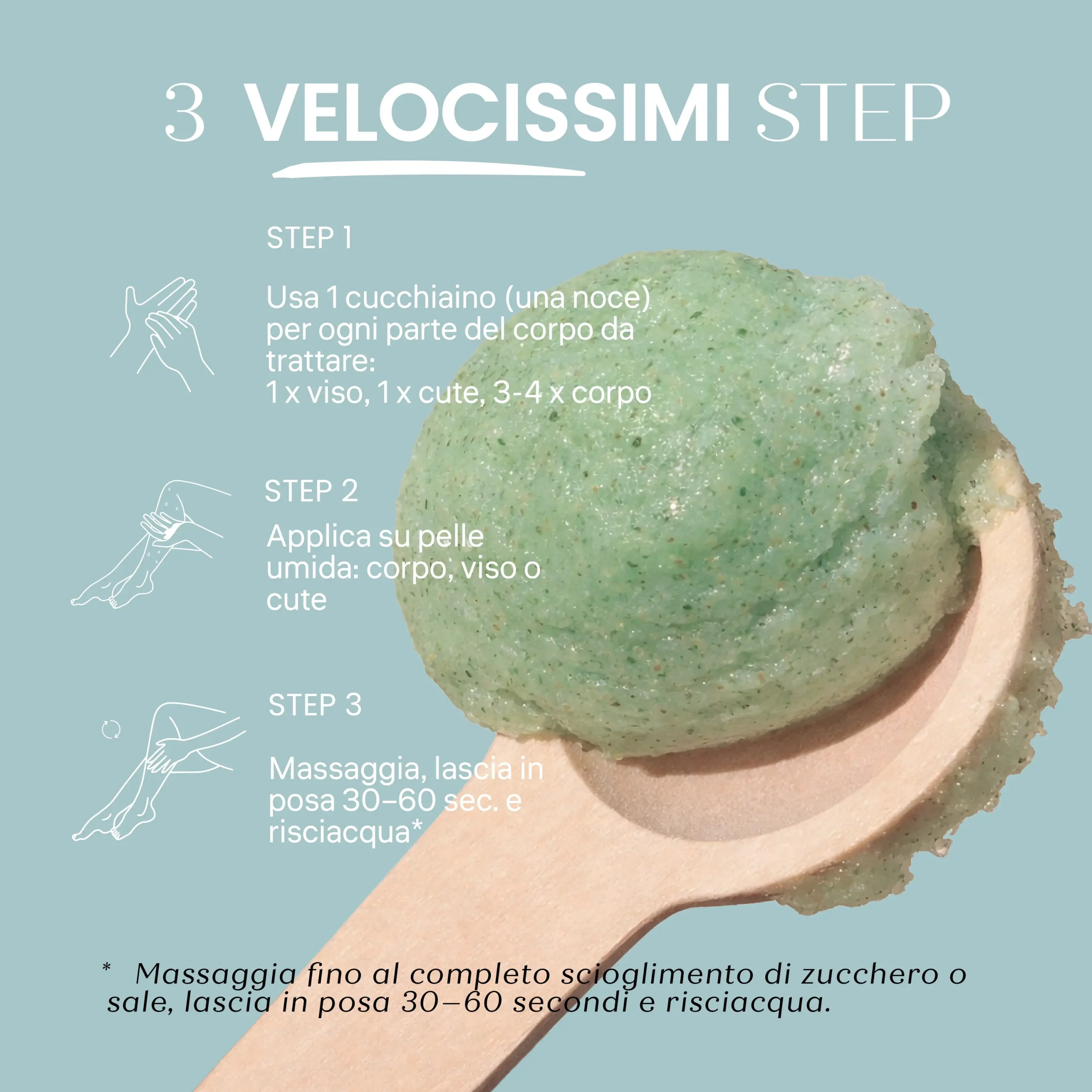 Trasformazione: Aggiungi acqua per trasformare la texture in crema e continua il massaggio su viso e corpo.
