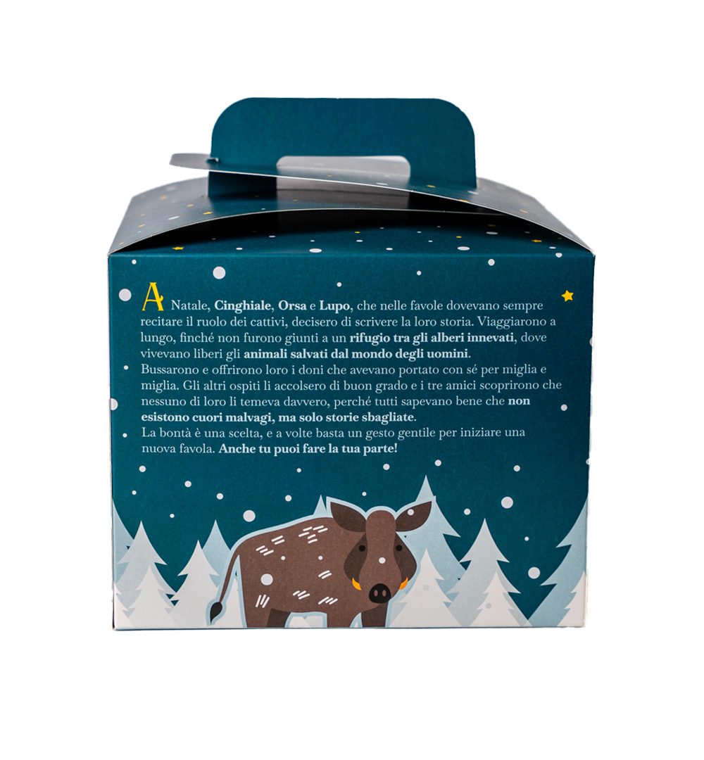 La sua superficie è impreziosita da una golosa glassa al cacao e nocciole, croccante e ricca, che lo rende un dolce irresistibile per le feste. Perfetto per condividere momenti speciali con famiglia e amici, è una scelta sostenibile e gustosa per il tuo Natale.