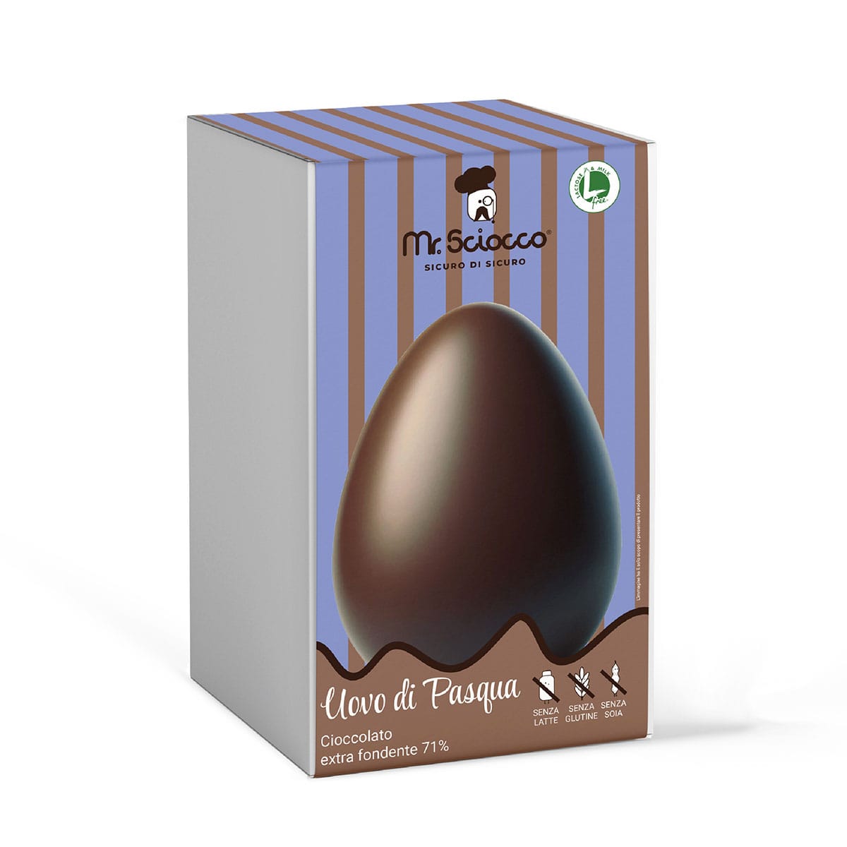 L’Uovo di Pasqua Fondente Mr. Sciocco è l’omaggio definitivo al cacao più nobile. Con una percentuale minima di cacao al 71%, questo uovo da 300g è stato creato per offrire un’esperienza sensoriale intensa, aromatica e decisa, dedicata ai veri amanti del fondente.